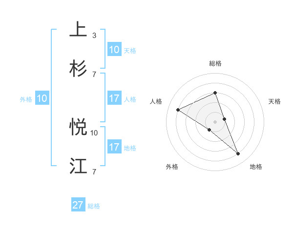 上杉 悦江さんの総格は27画の3点!