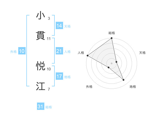 小貫 悦江さんを姓名の画数から五運を鑑定