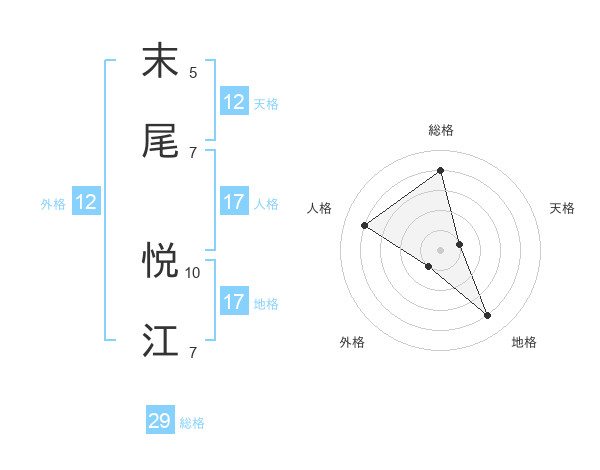 末尾 悦江さんを姓名の画数から五運を鑑定