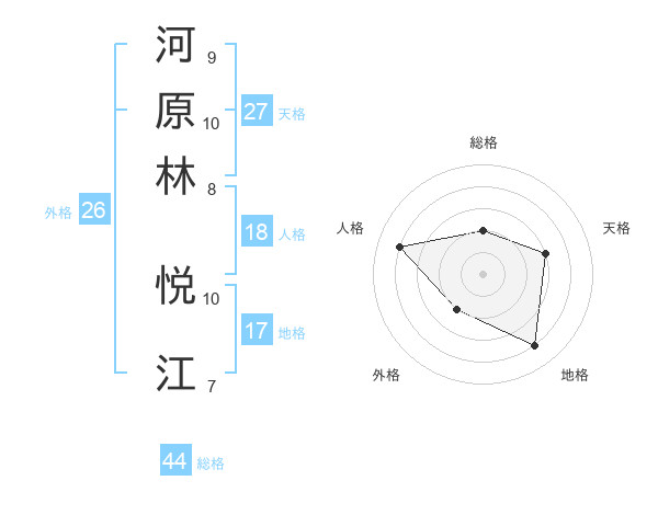 河原林 悦江さんを姓名の画数から五運を鑑定