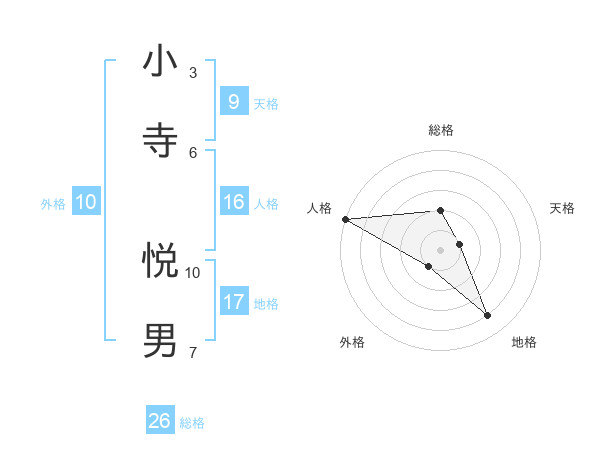 小寺 悦男さんを姓名の画数から五運を鑑定