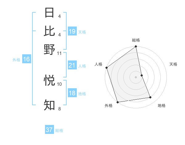 日比野 悦知さんを姓名の画数から五運を鑑定