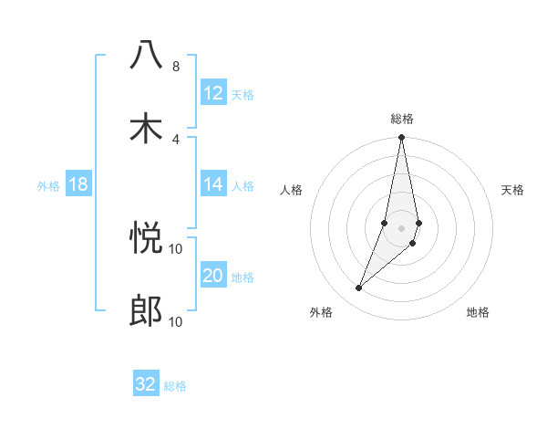 八木 悦郎さんを姓名の画数から五運を鑑定