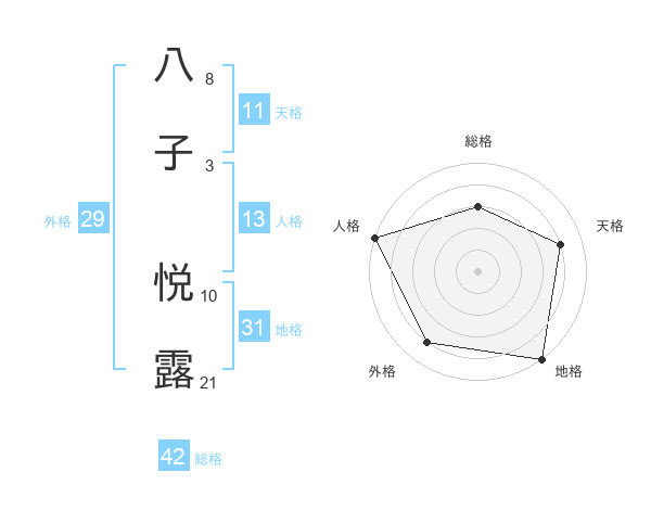 八子 悦露さんの天格は11画の4点!