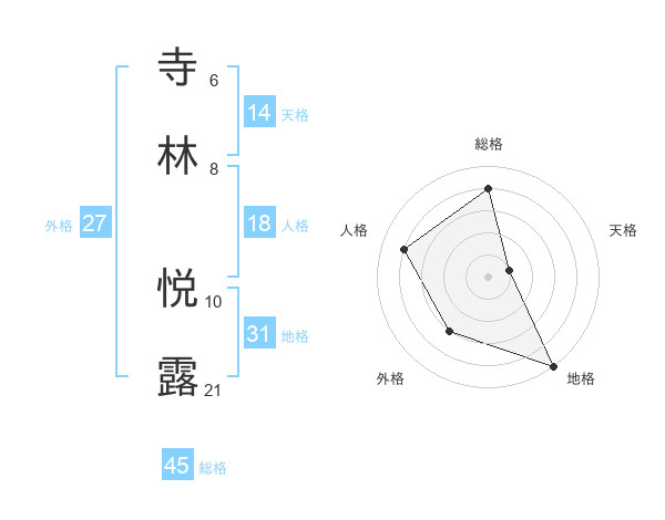 寺林 悦露さんの総格は45画の4点!