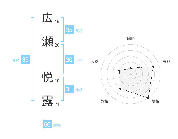広瀬 悦露さんの総格は66画の1点!