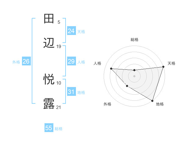 田辺 悦露さんの天格は24画の5点!