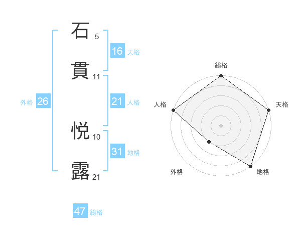 石貫 悦露さんの総格は47画の5点!
