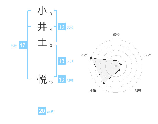 小井土 悦さんの外格は17画の4点!