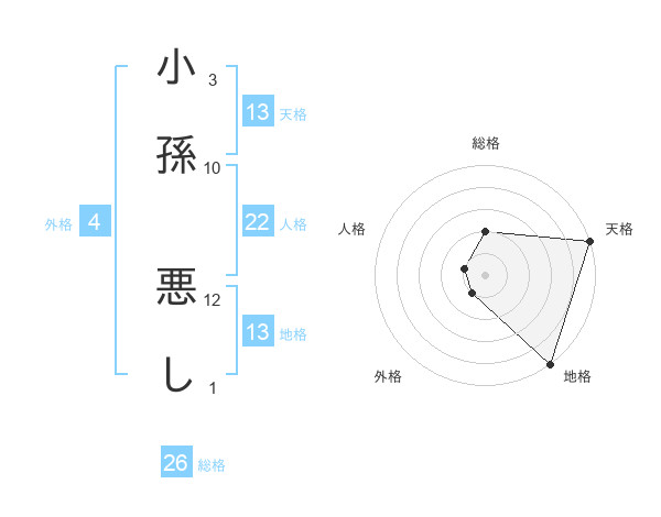 小孫 悪しさんを姓名の画数から五運を鑑定