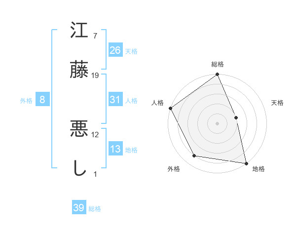 江藤 悪しさんを姓名の画数から五運を鑑定