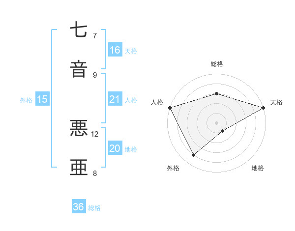 七音 悪亜さんを姓名の画数から五運を鑑定