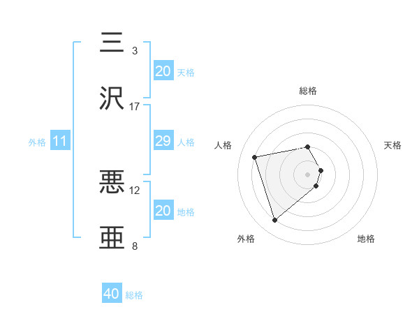 三沢 悪亜さんの地格は20画の1点!