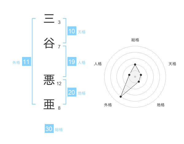 三谷 悪亜さんを姓名の画数から五運を鑑定