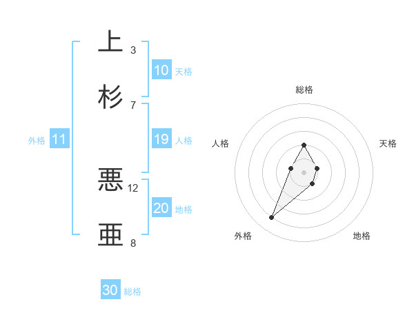 上杉 悪亜さんを姓名の画数から五運を鑑定