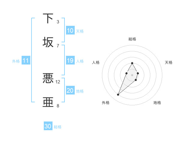 下坂 悪亜さんの総格は30画の2点!