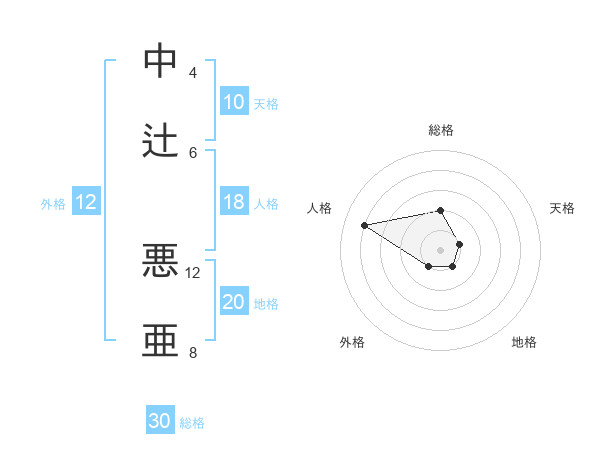 中辻 悪亜さんの総格は30画の2点!