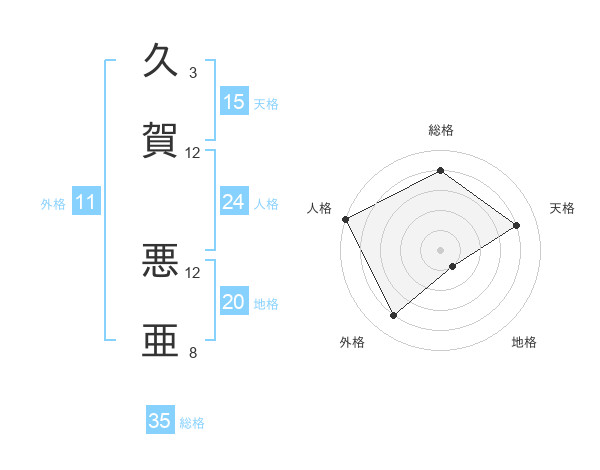 久賀 悪亜さんの総格は35画の4点!