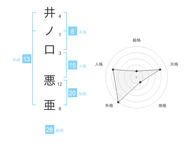 井ノ口 悪亜さんの総格は28画の1点!