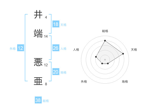 井端 悪亜さんの地格は20画の1点!