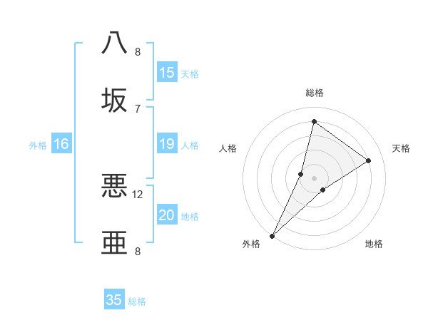 八坂 悪亜さんの地格は20画の1点!