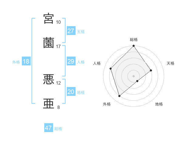 宮薗 悪亜さんを姓名の画数から五運を鑑定