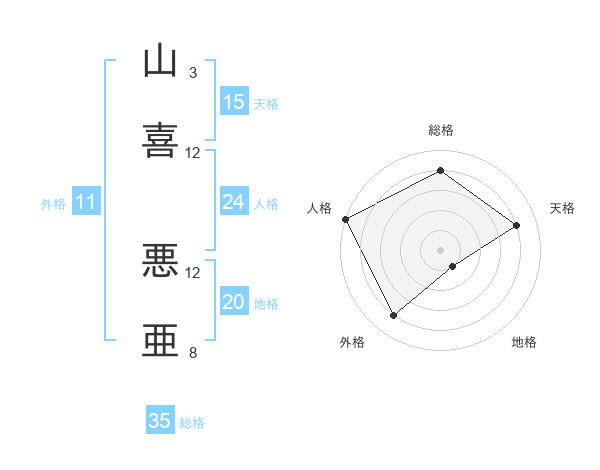 山喜 悪亜さんを姓名の画数から五運を鑑定