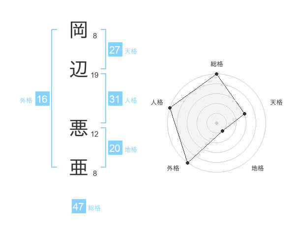 岡辺 悪亜さんの人格は31画の5点!
