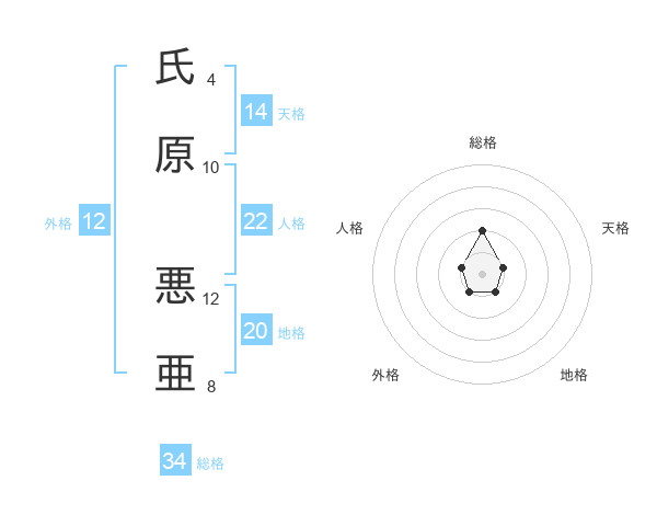 氏原 悪亜さんを姓名の画数から五運を鑑定