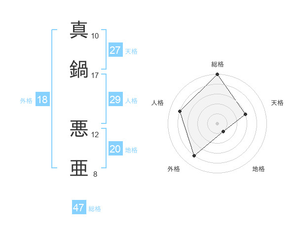 真鍋 悪亜さんを姓名の画数から五運を鑑定