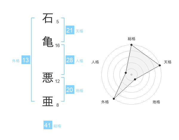 石亀 悪亜さんの地格は20画の1点!
