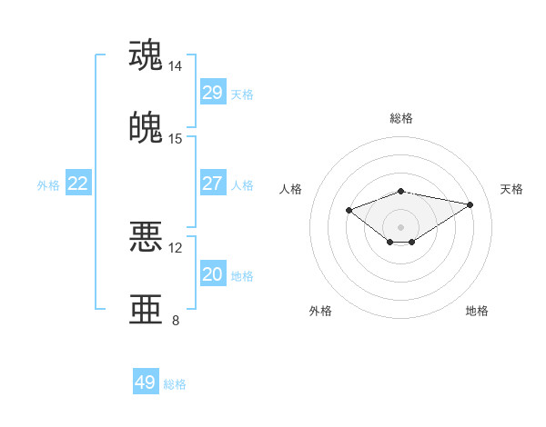 魂魄 悪亜さんの地格は20画の1点!