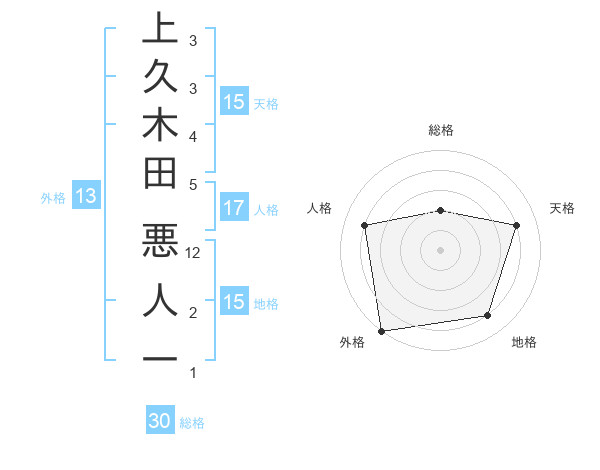 上久木田 悪人一さんを姓名の画数から五運を鑑定