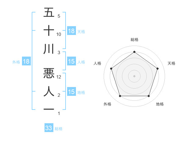 五十川 悪人一さんを姓名の画数から五運を鑑定