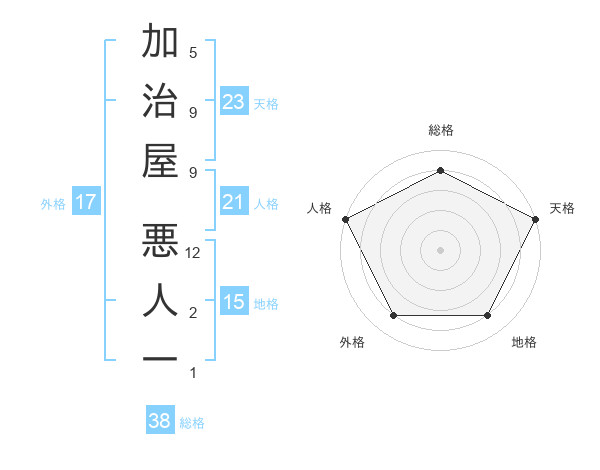 加治屋 悪人一さんを姓名の画数から五運を鑑定