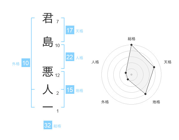 君島 悪人一さんの総格は32画の5点!