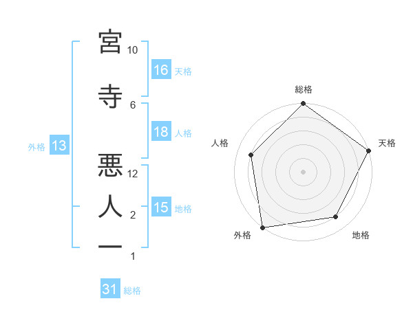 宮寺 悪人一さんを姓名の画数から五運を鑑定