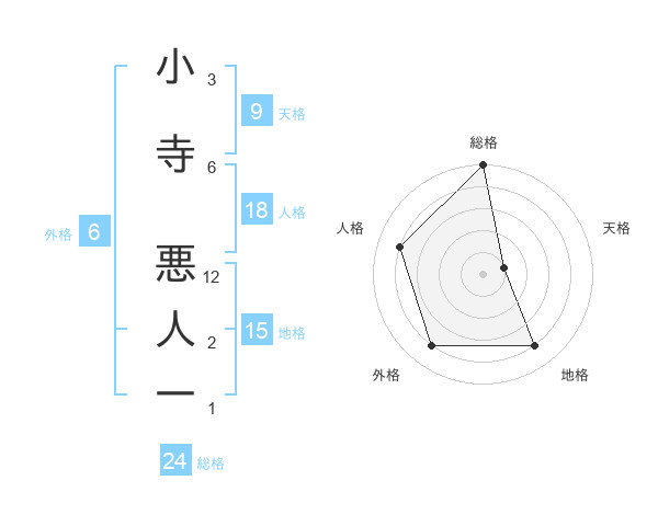 小寺 悪人一さんを姓名の画数から五運を鑑定