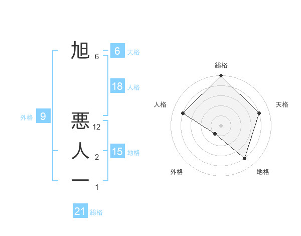 旭 悪人一さんを姓名の画数から五運を鑑定