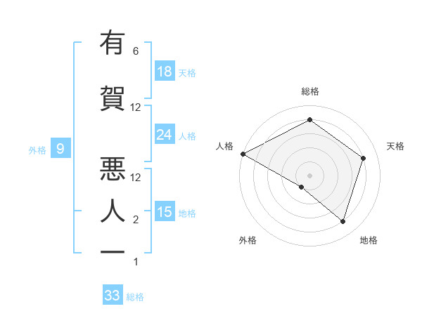 有賀 悪人一さんを姓名の画数から五運を鑑定