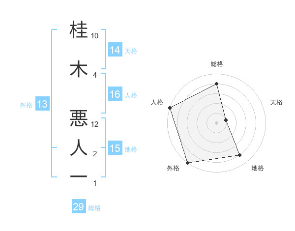 桂木 悪人一さんを姓名の画数から五運を鑑定