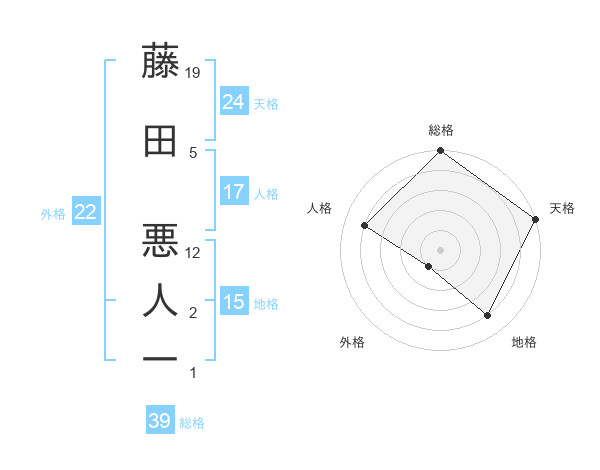 藤田 悪人一さんを姓名の画数から五運を鑑定