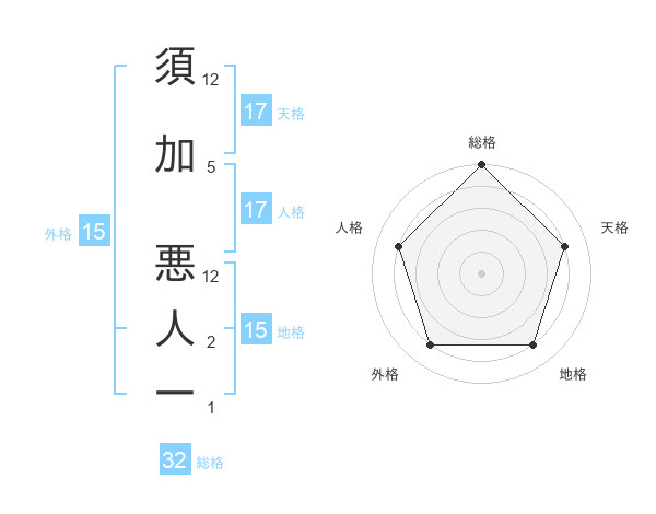 須加 悪人一さんの天格は17画の4点
