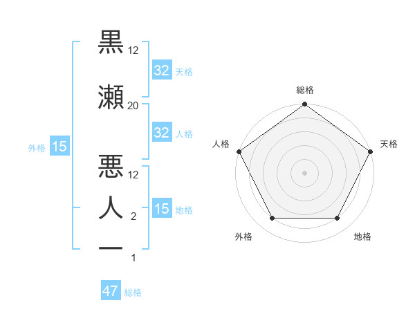 黒瀬 悪人一さんの天格は32画の5点!
