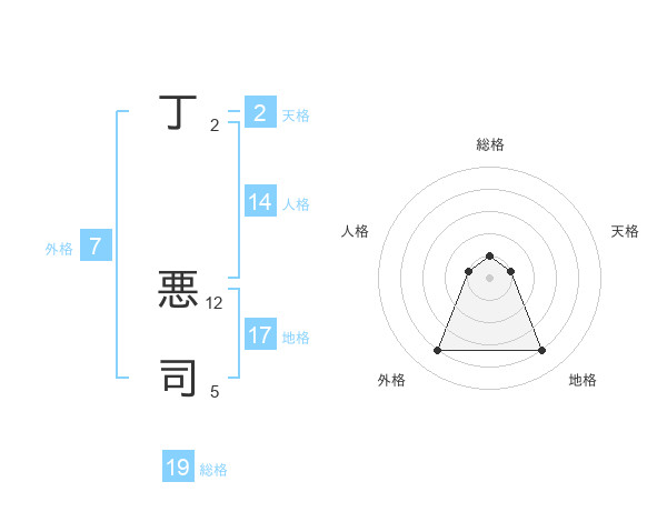丁 悪司さんの総格は19画の1点!