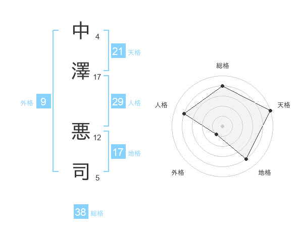 中澤 悪司さんの天格は21画の5点!