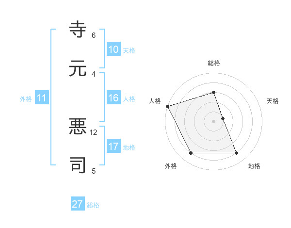 寺元 悪司さんを姓名の画数から五運を鑑定