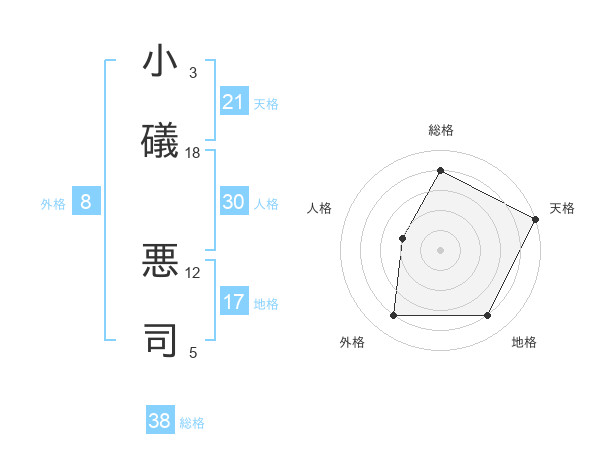 小礒 悪司さんの総格は38画の4点!