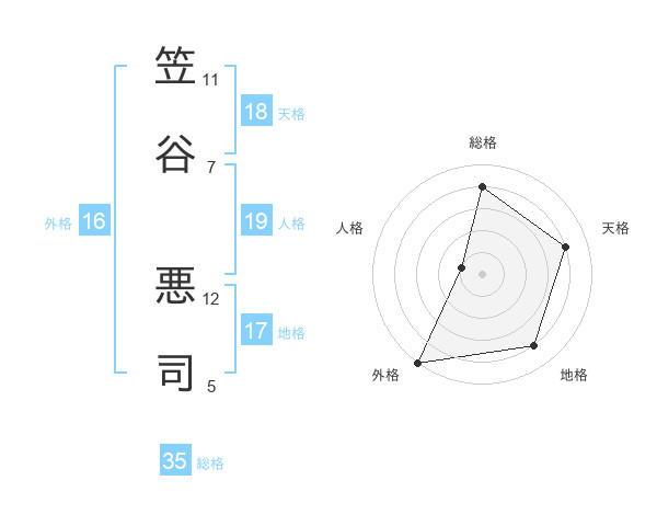 笠谷 悪司さんを姓名の画数から五運を鑑定