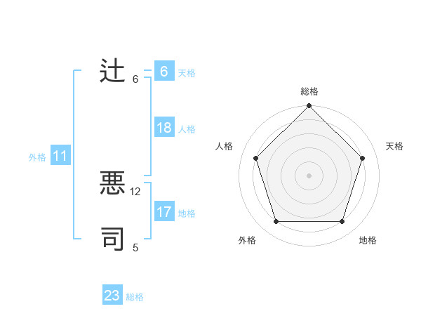 辻 悪司さんの総格は23画の5点